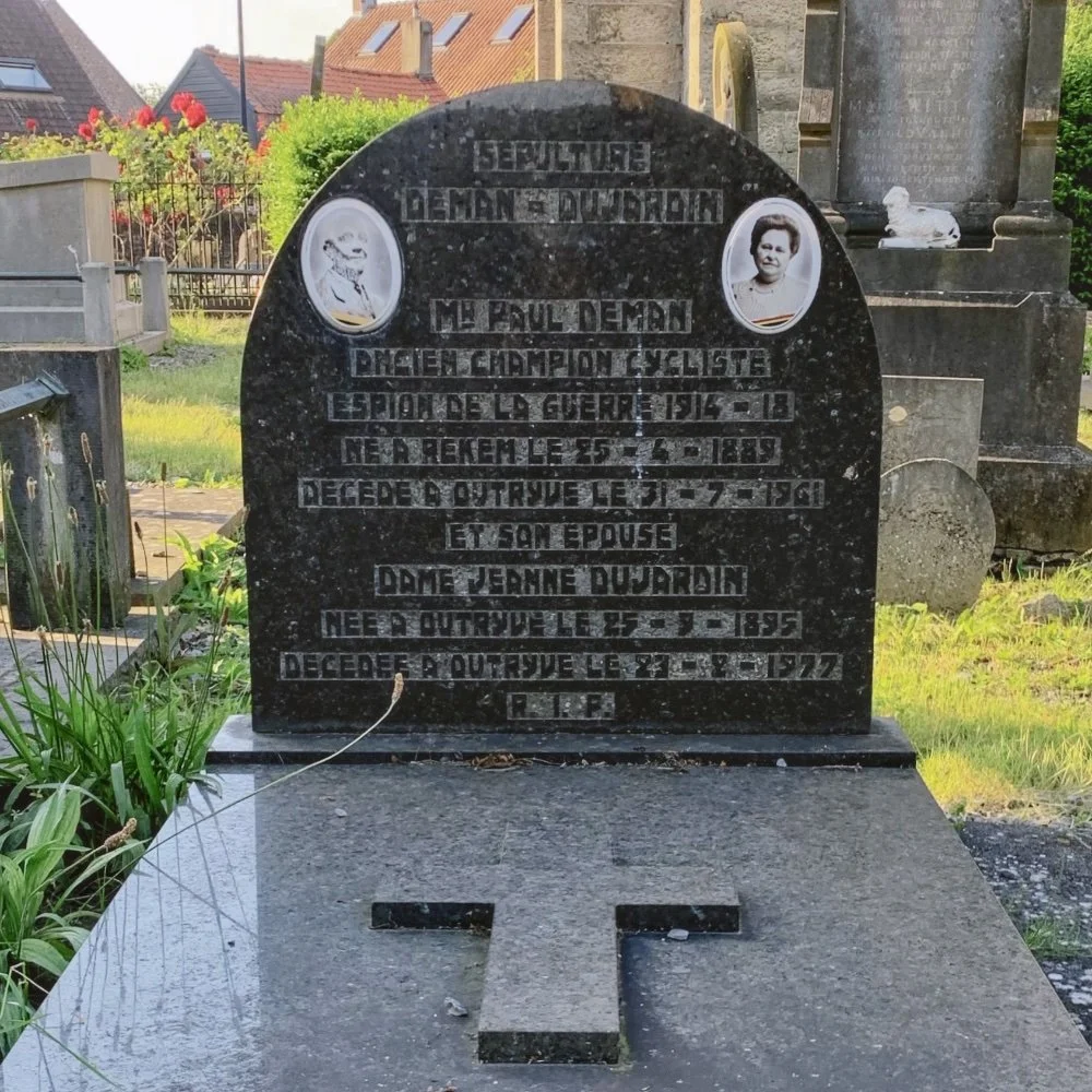 (Op het kerkhof rechts, in de “bocht”)Paul (Pol) Deman, geboren op 25 april 1889 in Rekkem, groeide uit tot een van de meest legendarische wielrenners van zijn tijd. Zijn carrière kreeg een historische wending in 1913, toen hij de allereerste editie van de Ronde van Vlaanderen won. Deze overwinning legde de basis voor zijn reputatie als een van de eerste echte Flandriens, renner met een onwrikbare wil en een uitzonderlijk doorzettingsvermogen. Paul overleed op 31 juli 1961, maar zijn nalatenschap leeft voort als een symbool van moed, vastberadenheid en de heroïek van het vroege Vlaamse wielrennen.